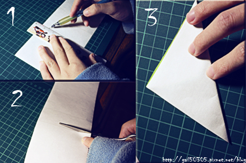 3.對摺成三角形(為了要做出對稱的形,對折會比較方便)