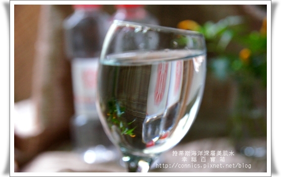倒杯<<特蒂斯海洋深層美肌水>>來透明杯看看~ 哇~這源自花蓮七星潭的<<特蒂斯海洋深層美肌水>>是那麼的天然、純淨